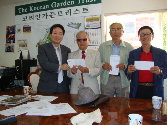 - 코리안가든 사업의 참 뜻에 동참하시고 코리안가든 실무팀을 격려하시면서 소중한 성금을 모아 전달하여 주신 노인회 회장단 여러 어르신들께 다시 한번 감사의 인사를 전합니다.
